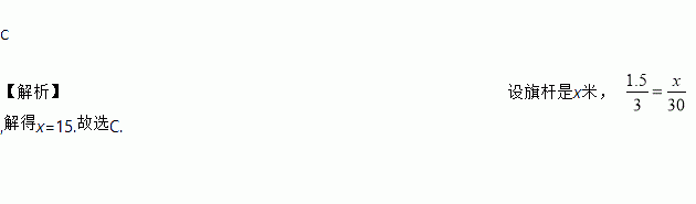 在相同时刻太阳光线是平行的,如果高1.5米的测杆影长3米,那么此时影长30米的旗杆的高度为( )