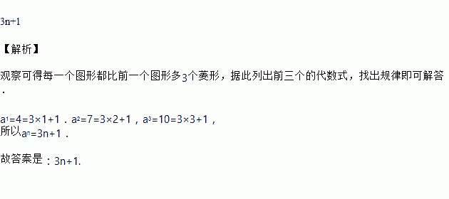 用形状相同的菱形拼成如图所示的图案,则第n个图案中有菱形_____个(应含n的式子表示)