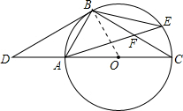 分析 (1)根据已知条件证得△ABO为等边三角形,根据三角形外角的性质可求得∠ABD=∠ADB=30°,则可求得∠OBD=90°,BD是⊙O的切线;