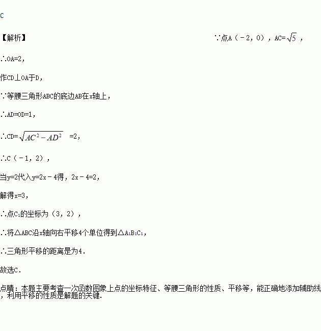 ,将△ABC沿x轴向右平移,当点C的对应点C1落在直线y=2x﹣4上时,则平移的距离是( )
