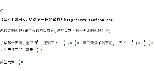 一本书共n页,小华第一天读了全书的,第二天读了剩下的,则未读完的页数是_____.(用含n的式子表示)
