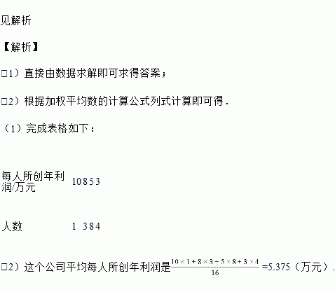 每人所创年利润/万元 | 10 | 8 | 5 | 3 |