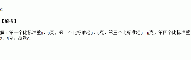 检测足球时,超过标准质量的克数记为正数,不足标准质量的克数记为负数.从轻重的角度看,下图中最接近标准的是( )