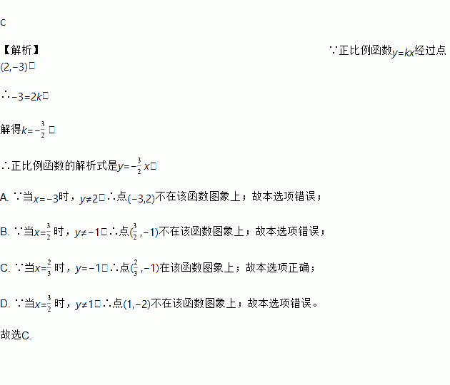 若一个正比例函数的图象经过点(2,-3),则这个图象一定也经过点( )