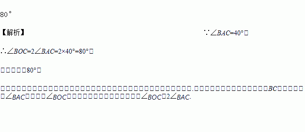 如图,点A、B、C在圆O上,且∠BAC=40°,则∠BOC﹦________.