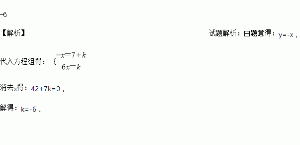 若方程组的解x与y互为相反数,则k=_________