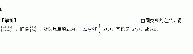 如果单项式-3x4a-by2与x3ya+b的和是单项式,那么这两个单项式的积是( )