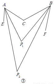 (3)如图③,若α≥β,∠EAC与∠FBC的平分线相交于P1,∠EAP1与∠FBP1的平分线交于P2 ;依此类推,则∠P5=______.(用α、β表示)