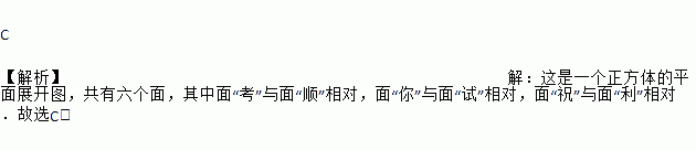C 【解析】【解析】 这是一个正方体的平面展开图,共有六个面,其中面“考”与面“顺”相对,面“你”与面“试”相对,面“祝”与面“利”相对.故选C.