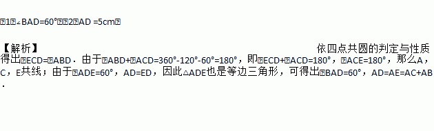 如图在△ABC中,∠BAC=120°,以BC为边的外作等边三角形△BCD,把△ABD绕点D按顺时针方向旋转60°到△ECD的位置,若AB=3cm,AC=2cm