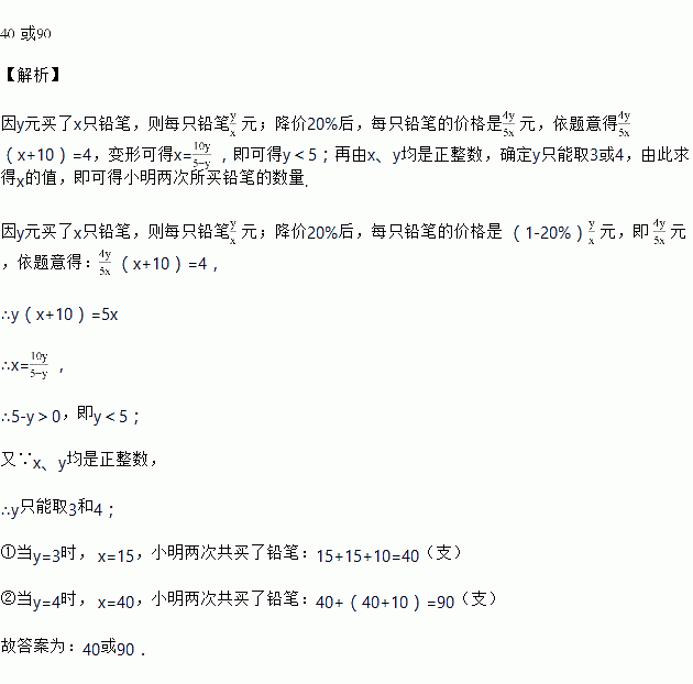 小明到商场购买某个牌子的铅笔支,用了![]()