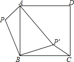 如图,已知P为正方形ABCD外的一点,PA=1,PB=2,将△ABP绕点B顺时针旋转90°,使点P旋转至点P′,且AP′=3,则∠BP′C的度数为 ( )
