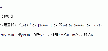 已知(x+3)2+│3x+y+m│=0,且y是负数,则m的取值范围是( )