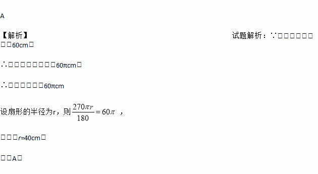 如图,已知一块圆心角为270°的扇形铁皮,用它作一个圆锥形的烟囱帽(接缝忽略不计),圆锥底面圆的直径是60cm,则这块扇形铁皮的半径是( )
