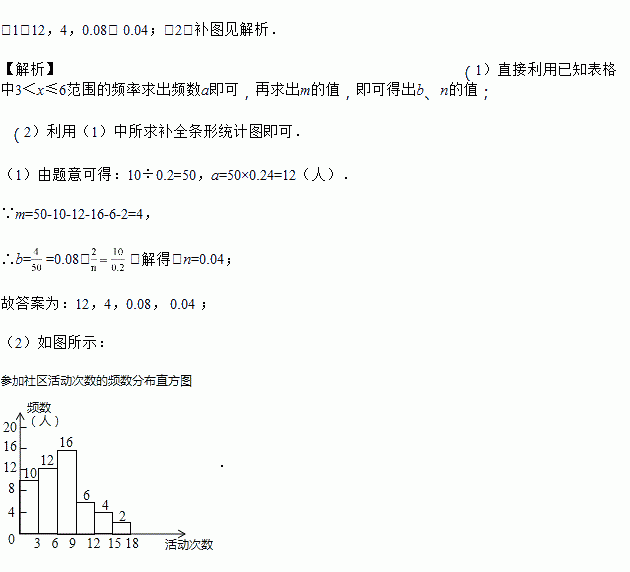 某校为了解全校学生上学期参加“生涯规划”社区活动的情况,学校随机调查了本校50名学生参加社区活动的次数,并将调查所得的数据整理如下: