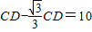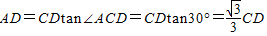 【答案】分析:在Rt△ADC中,先根据三角函数的关系求出AD的长度,在Rt△BDC中,BD=CD,从而得到BD-AD=