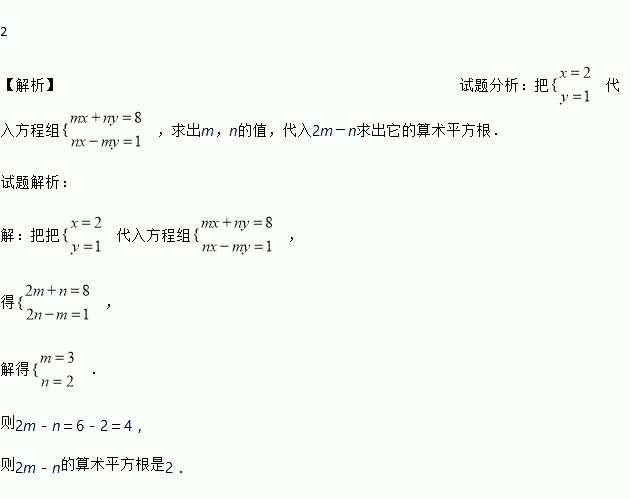 已知是二元一次方程组的解,求2m-n的算术平方根.