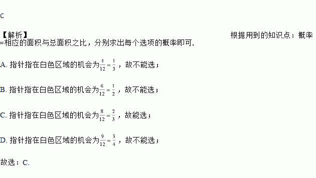 自由转动转盘,指针指在白色区域的机会为的转盘是( )