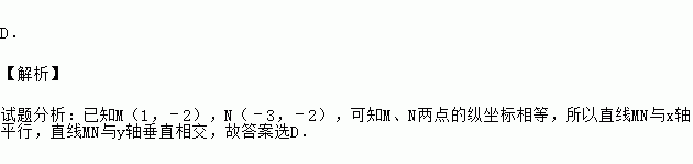 已知M(1,﹣2),N(﹣3,﹣2),则直线MN与x轴,y轴的位置关系分别为( )
