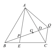 如图,在等边△ABC中,点D是AC上的一点,在BC上取一点E,使BE=CD,连接AE交BD于点P,在BD的延长线上取一点Q,使AP=PQ,连接AQ、CQ,点G为PQ的中点,DG=PE,若CQ=,则BQ=________________.