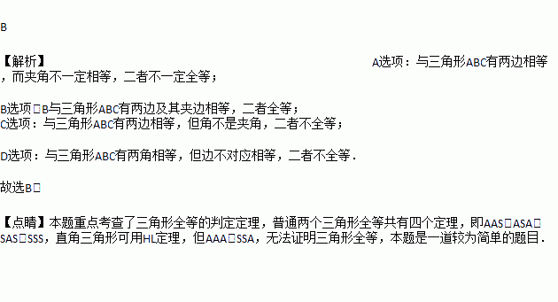 如图, 、、分别表示的三边长,则下面与一定全等的三角形是( )