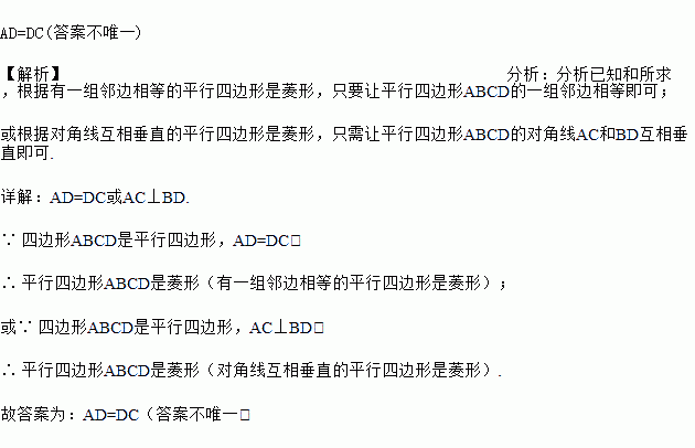 □ABCD,试添加一个条件:______________,使得□ABCD为菱形.