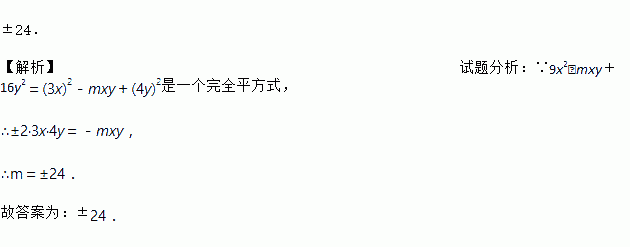 9x2﹣mxy+16y2是一个完全平方式,则m的值为 .