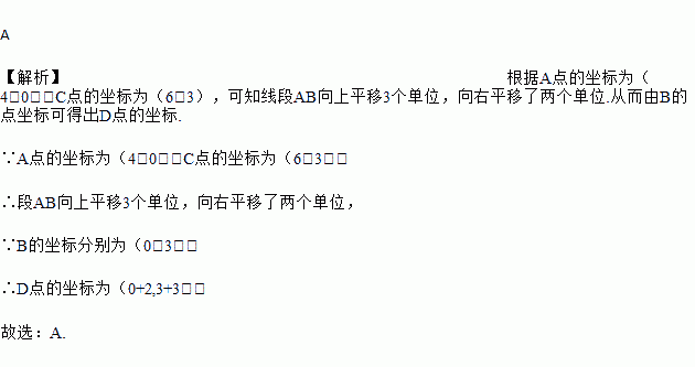 如图,已知点A,B的坐标分别为(4,0)、(0,3),将线段AB平移到CD,若点C的坐标为(6,3),则点D的坐标为( )