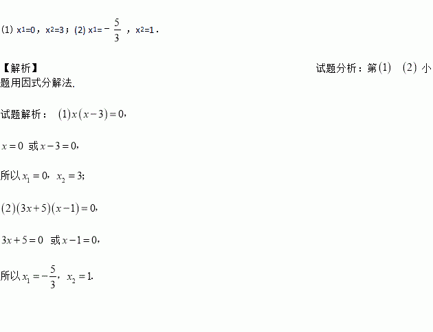 (1)x2﹣3x=0