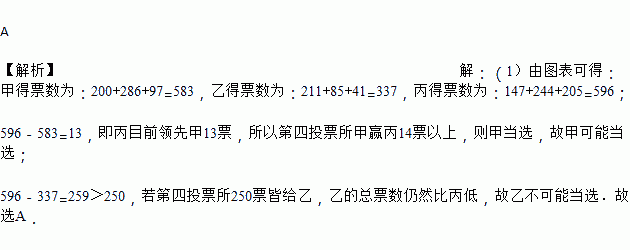 A. 甲可能当选 B. 乙可能当选 C. 丙一定当选 D. 甲、乙、丙三人都可能当选