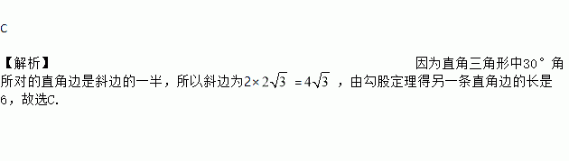 已知直角三角形中30°角所对的直角边长是 ,则另一条直角边的长是( )