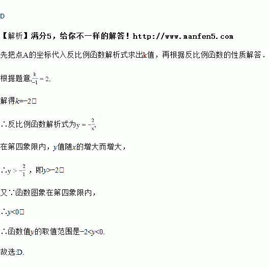 反比例函数的图象经过点,则当时,函数值的取值范围是( )