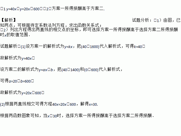 (2)当选择方案一所得报酬高于选择方案二所得报酬时,求x的取值范围.