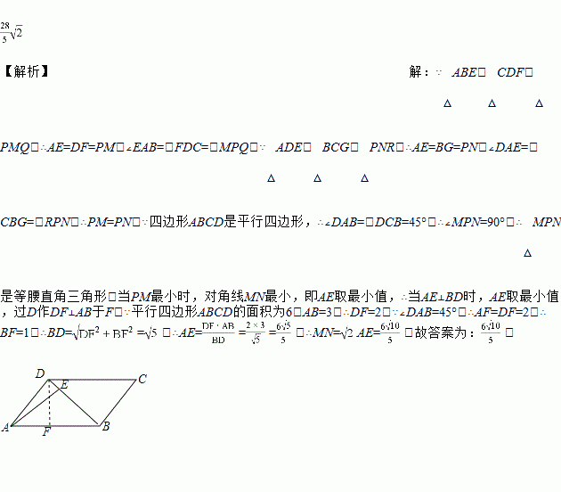 则由纸片拼成的五边形PMQRN中,对角线MN长度的最小值为 .