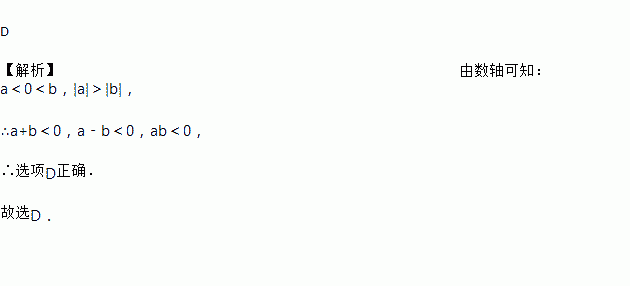 A. a>0 B. a+b>0 C. a﹣b>0 D. ab<0