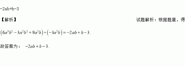 与单项式-3a2b的积是6a3b2-3a2b2+9a2b的多项式是_________.