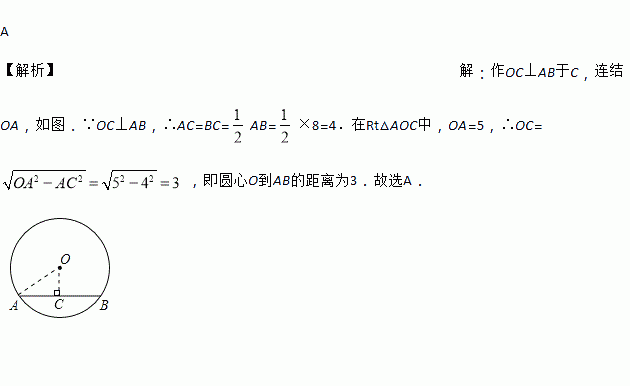 在⊙O中,已知半径为5,弦AB的长为8,则圆心O到AB的距离为( )
