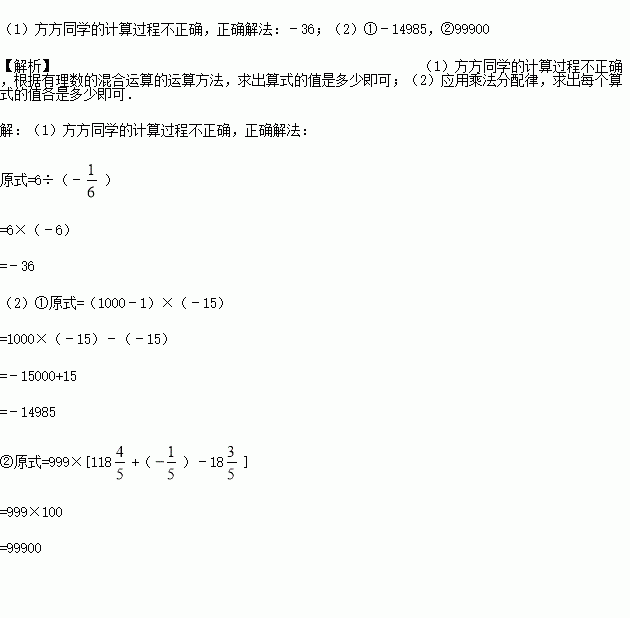 请你判断方方同学的计算过程是否正确,若不正确,请你写出正确的计算过程.