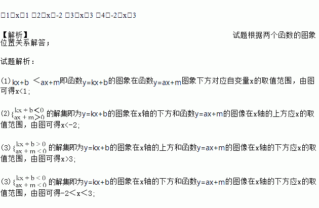 函数y=kx+b和函数y=ax+m的图像如图所示,求下列不等式(组)的解集
