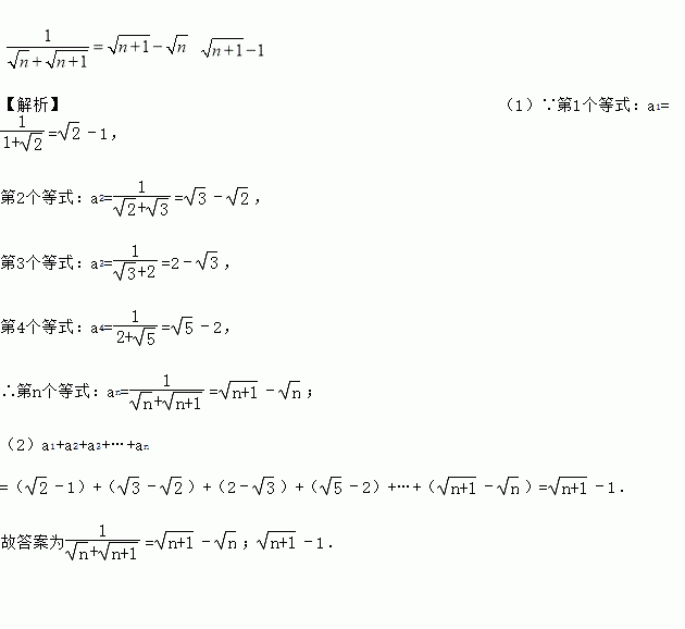 (1)请写出第n个等式:an=______________;