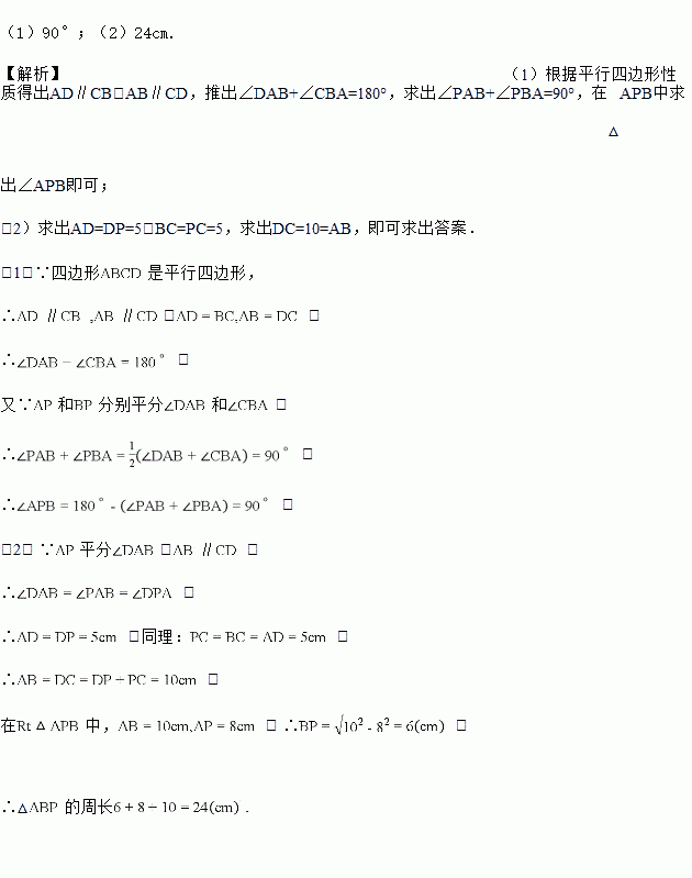 (2)如果,求⊿ABP的周长.