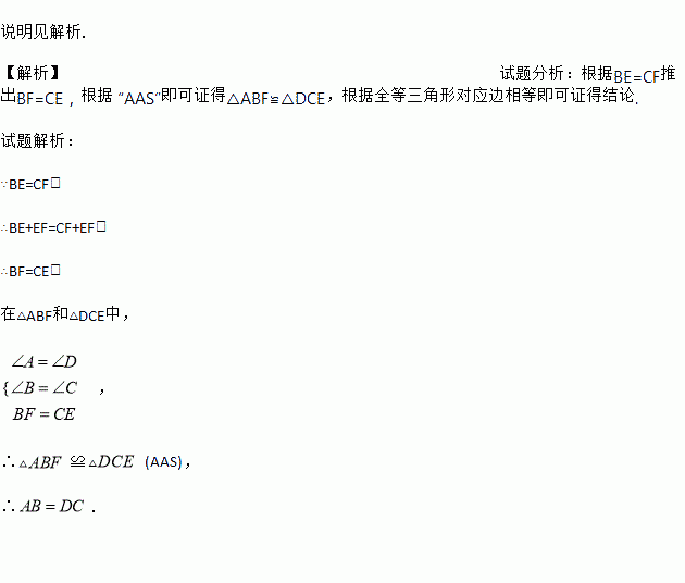 如图,点E,F在BC上, , , ,试说明.