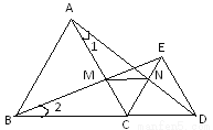 如图,点C为线段BD上的点,分别以BC,CD为边作等边三角形ABC和等边三角形ECD,连接BE交AC于点M,连接AD交CE于点N,连接MN.试说明:(1);(2)为等边三角形.