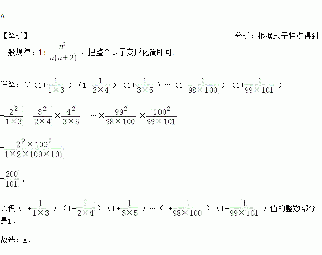 积(1+)(1+)(1+)…(1+)(1+)值的整数部分是( )