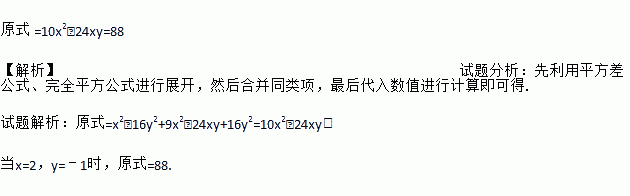 先化简,再求值:(x﹣4y)(x+4y)+(3x﹣4y)2,其中x=2,y=﹣1.