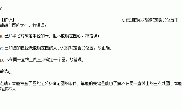 A. 已知圆心 B. 已知半径 C. 已知直径 D. 三个点