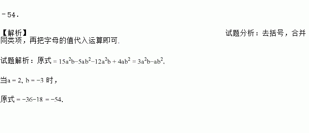 先化简,再求值:5(3a2b﹣ab2)﹣4(3a2b﹣ab2),其中a=2,b=﹣3.