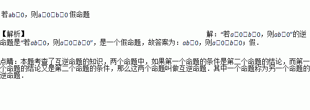 “若a>0,b>0,则ab>0”的逆命题是___,该逆命题是一个______命题(填“真”或“假”)