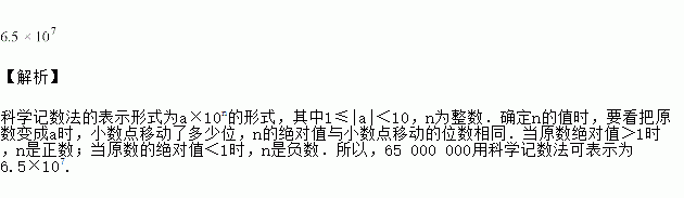 近年来,国家重视精准扶贫,收效显著,据统计约65000000人脱贫,65000000用科学记数法可表示为______.