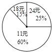 某水果店销售11元,18元,24元三种价格的水果,根据水果店一个月这三种水果销售量的统计图如图,可计算出该店当月销售出水果的平均价格是______元